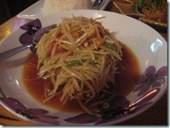 The som tum was not as sweet as the one served up at Thai Garden Cafe but it was very yummy, with a nice heat. It was not as nutty but was packed with more papaya. It must be a regional preference but the som tum lacked the carrot found in the Thai Garden Cafe offering.